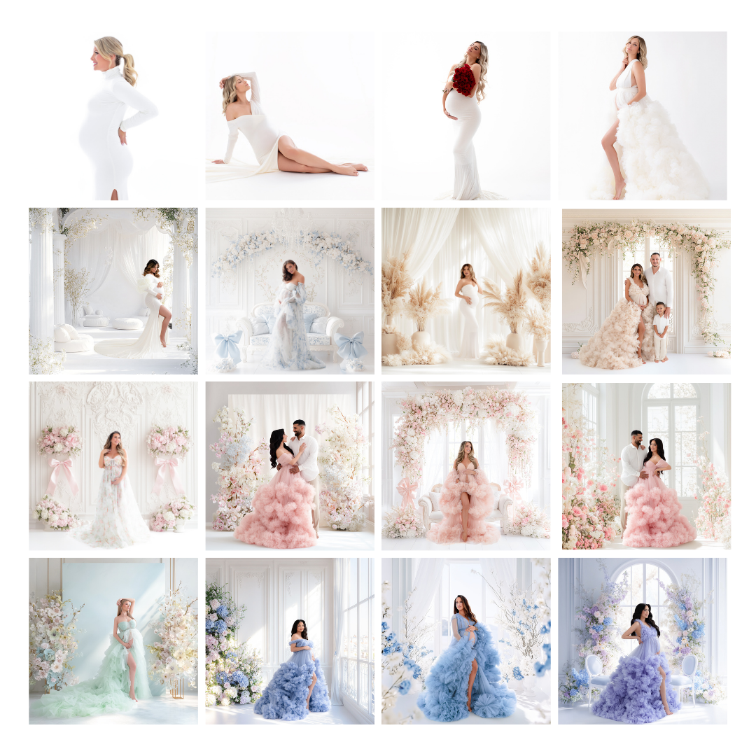 These are the exact types of refined, bright & airy images you’ll learn to create — using simple lighting, intentional posing, and clean digital backdrop techniques.