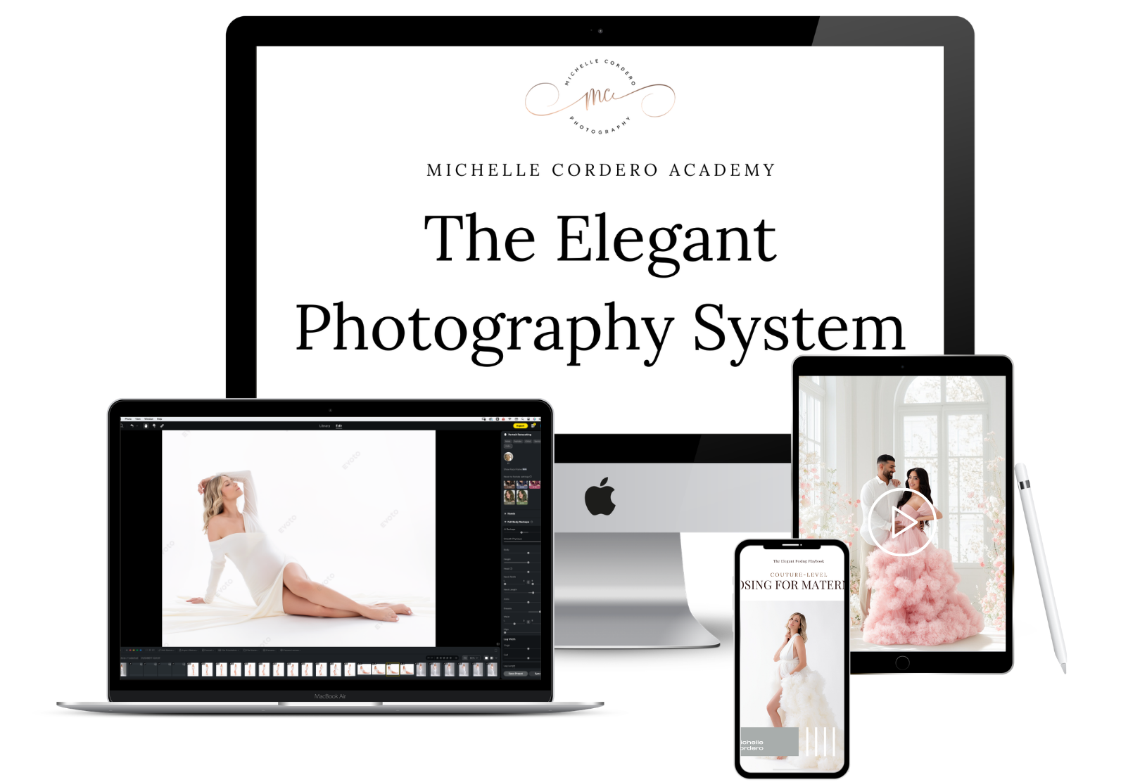Inside The Elegant Photography System, you’ll learn how to create refined maternity portraits using simple lighting, intentional posing, and clean digital techniques — all designed for small studios and home spaces.